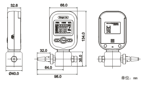 測(ce)量氣體流(liú)量的流量(liàng)計 機(jī)械尺寸: