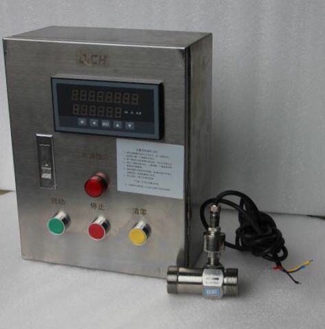 流量傳感器(qì) (選擇對應的(de)口徑和流量控制(zhi)流量範圍 )+泵(beng)或電磁閥門+定量(liàng)控制櫃